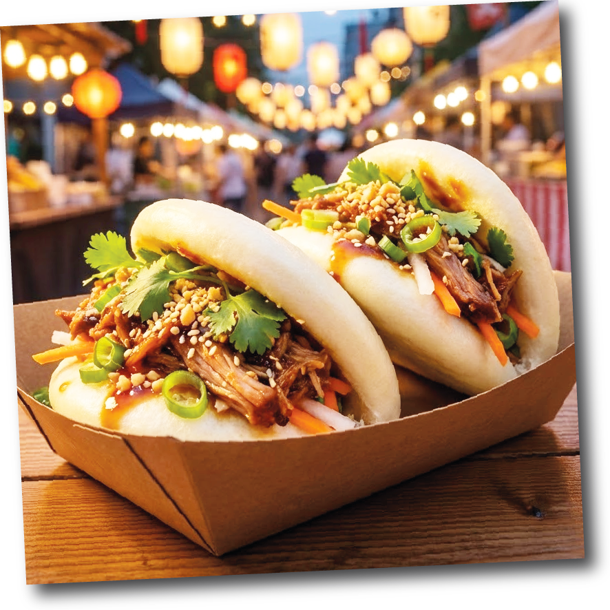 Bei uns gibt’s die besten Bao Buns : Traditionell gedämpft, federleicht und prall gefüllt mit frischen, intensiven Flavors.